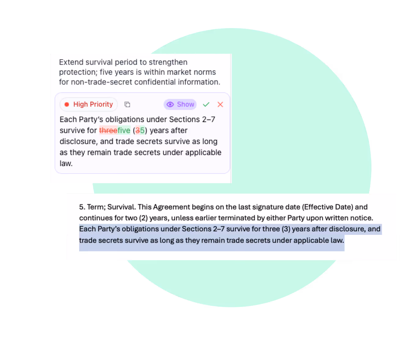 Gavel Exec reviews full agreements directly inside Microsoft Word. Review is grounded in legal and market precedent and aligned with your institutional negotiation posture.